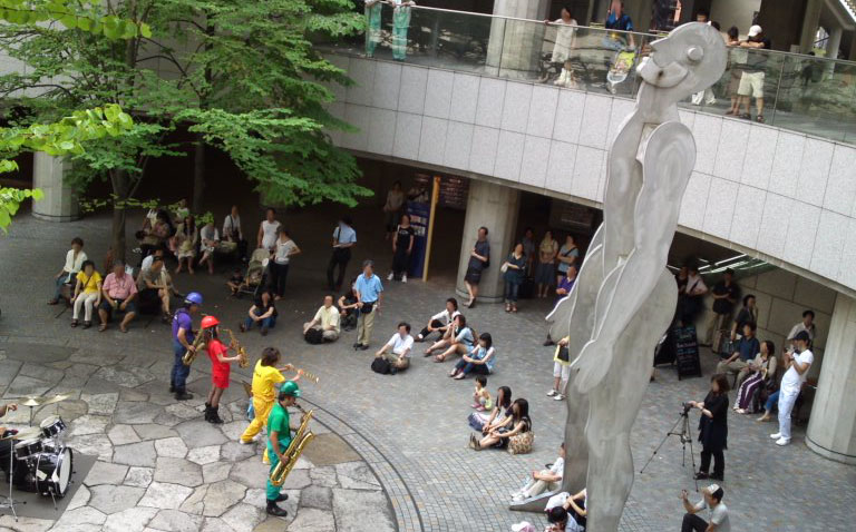 サンクンガーデンは石に囲まれた吹き抜けの広場で、野外としては最も響きの良い場所のひとつです。